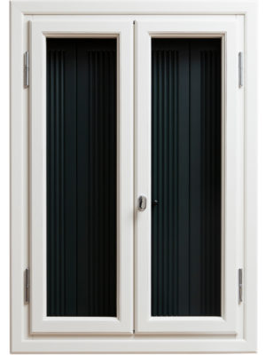Note: gocciolatoio in legno, montantino centrale ridotto, pomelli in ottone